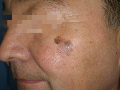 恶性雀斑样痣面部颧骨上一片棕色斑图