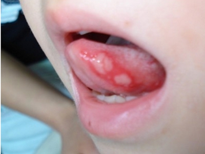 患手足口病的儿童,舌头上出现直径为1-3mm的米粒大小水疱,数量较多,散在分布,一般不融合,水疱周围有红晕。随着进展,水疱可发生破溃,形成浅浅的小溃疡,溃疡面为白色,并伴有疼痛症状,患儿可因此出现拒食行为。