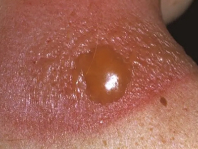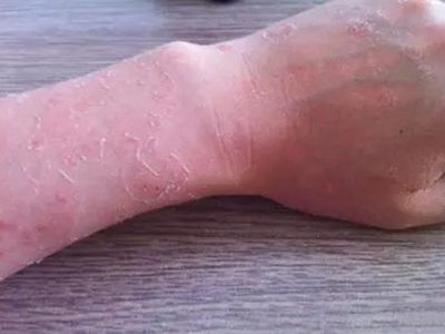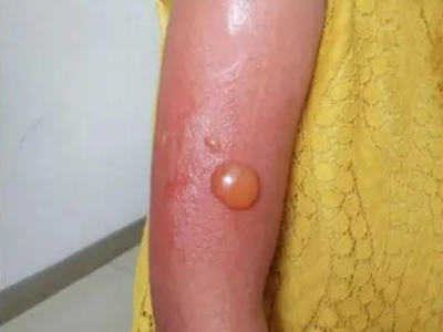 日晒伤皮损较重时可在胳膊皮肤部位出现红肿、水疱现象,水疱为圆形或卵圆形,绿豆至蚕豆大小,疱壁紧张,疱液呈淡黄色,且周围皮肤泛红、有渗液。