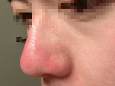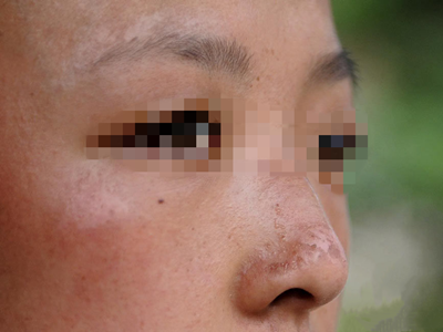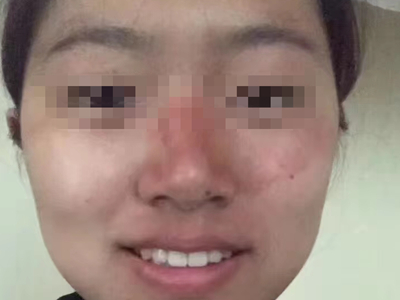 日晒伤鼻梁和一侧脸颊发红图