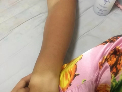 日晒伤胳膊黑一片红一块图