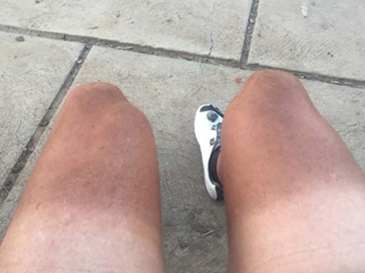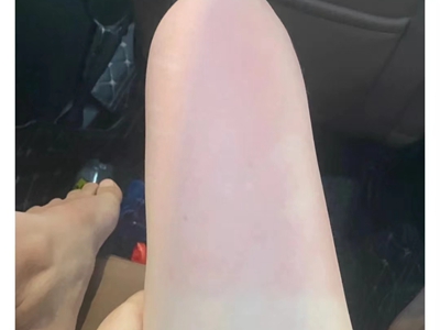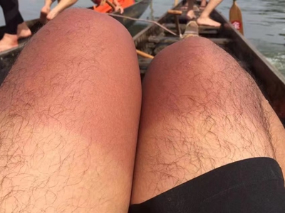 日晒伤腿晒的半条腿发红图