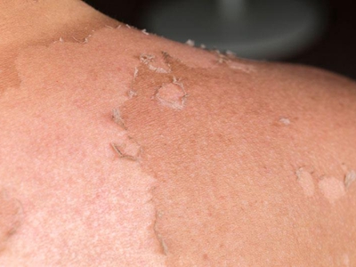 日晒伤肩膀脱皮露出粉红色皮肤图