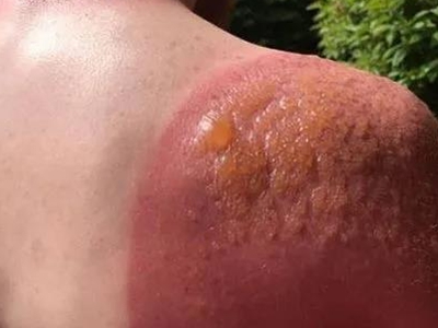 日晒伤肩膀一大片红还起疱图