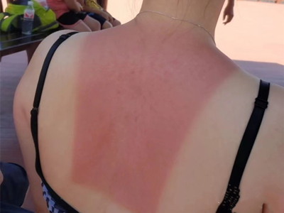 日晒伤表现为皮肤颜色变深,严重者其上有密集分布的透明水疱,呈粟粒至豆粒大小,部分可融合成大水疱,伴有刺痛感以及烧灼感。
