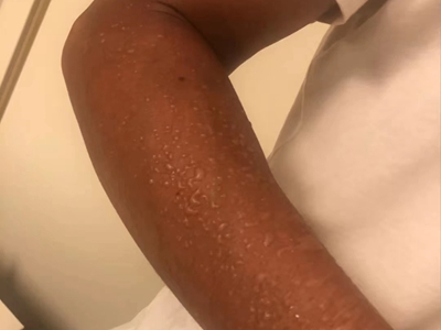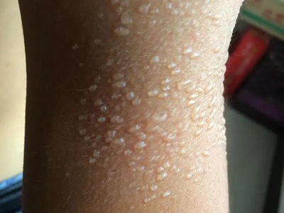 日晒伤胳膊颜色发暗长密密麻麻的水疱图