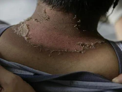 日晒伤后背大面积脱皮图