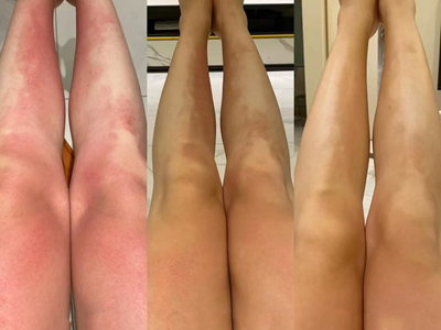 日晒伤大腿红斑逐渐变为褐斑图