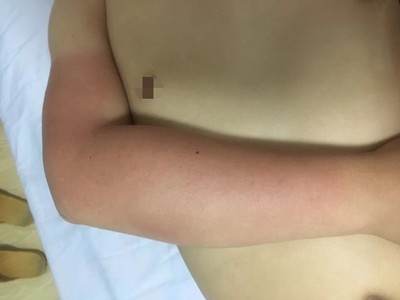 日晒伤胳膊大片红图