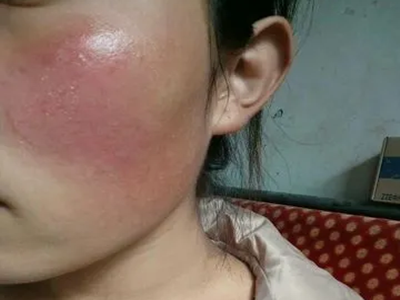 日晒伤脸上有点肿发红发亮图