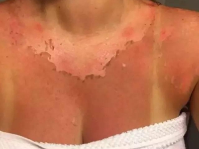 日晒伤表现为边缘清楚的红斑,有肿胀感和灼痛感,是皮肤长时间直接暴露在高强度紫外线下导致的一种皮炎,好发于夏季,尤其是不注意防晒者。