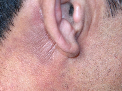 面颈部毛囊性红斑黑变病耳朵后面粗糙干燥图