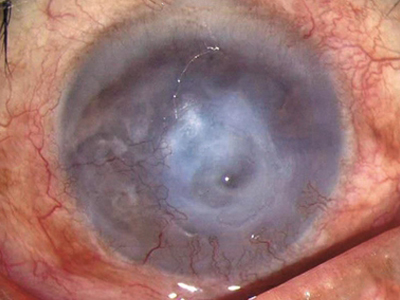 单纯疱疹性角膜炎侵犯角膜表现为眼白有明显的红血丝交错分布,黑眼球发白,看起来像白斑,像是覆盖了一层白膜。若疾病多次复发,可导致视力下降,甚至失明。