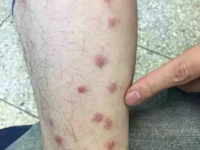 尾蚴性皮炎发生在小腿上,为绿豆大小、圆形或类圆形的红色丘疹,稍突出于皮肤,多达数十个,丘疹数量可逐渐增加,或范围逐渐扩大并融合成风疹块。