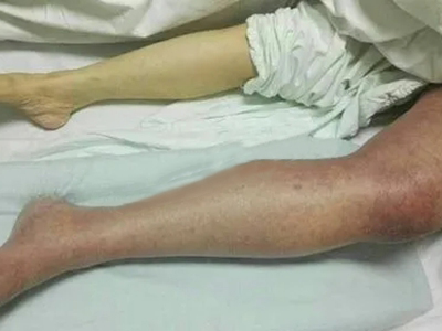下肢深静脉血栓形成后综合征患者的小腿明显肿胀,皮肤呈紫红色,伴有胀痛感,病情加重局部会出现色素沉着、浅静脉扩张,严重时会出现慢性溃疡。
