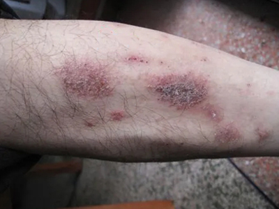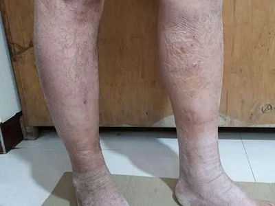 下肢深静脉血栓形成后综合征发生在脚踝部位时,表现为皮肤出现暗红色的色素沉着斑,表皮粗糙增厚,有干燥起皮现象,并伴有瘙痒感,是下肢血液循环障碍,局部淤血导致。
