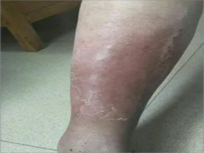 下肢深静脉血栓形成后综合征患者小腿色素沉着严重,局部皮肤发黑、粗糙,伴有轻微肿胀,局部皮肤还可出现片状的糜烂,常迁延不愈。