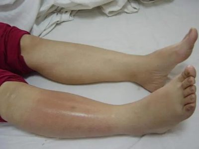 下肢深静脉血栓形成后综合征右腿严重红肿图