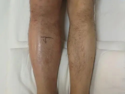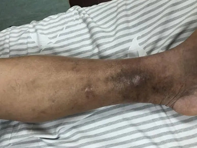 下肢深静脉血栓形成后综合征小腿黑斑脱皮图