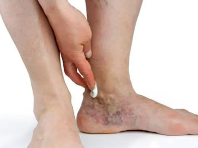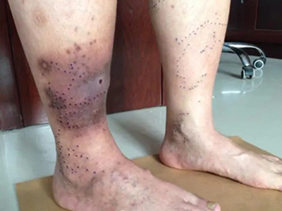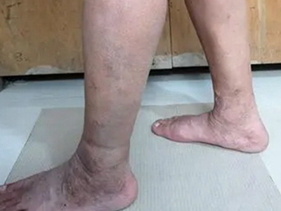 下肢深静脉血栓形成后综合征可导致脚踝处出现浅静脉扩张,局部皮肤有血管突出,凹凸不平,周围皮肤发紫,有轻微色素沉着,严重时会逐渐形成慢性溃疡。
