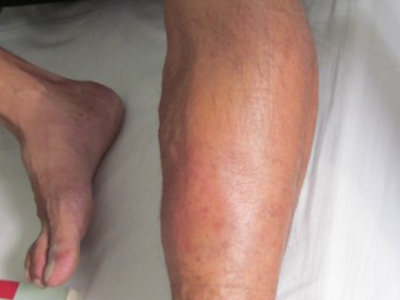 下肢深静脉血栓形成后综合征小腿肿胀发红图