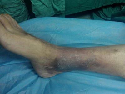 下肢深静脉血栓形成后综合征小腿发黑流脓图