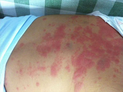 荨麻疹型药疹背部大片红斑图
