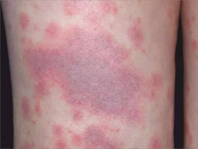 荨麻疹型药疹是药疹中较常见的一种类型,可由变态反应机制及非变态反应机制引起。荨麻疹型药疹的风团可泛发全身,可同时伴有血清病样症状,如发热、关节疼痛等,严重病例可出现过敏性休克。