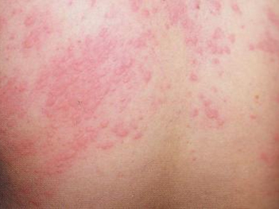 荨麻疹型药疹背部有一片红色皮疹图