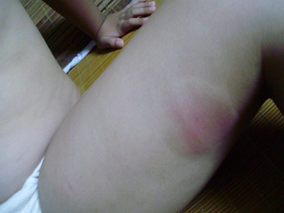 荨麻疹型药疹大腿上有大片红斑图