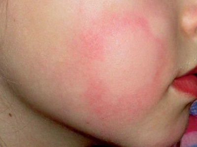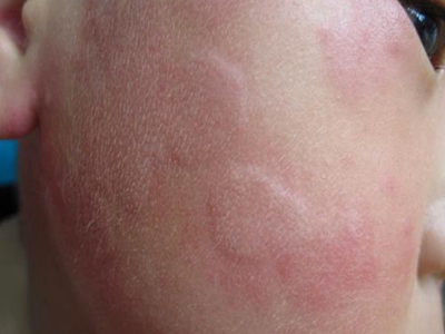 荨麻疹型药疹面部有大面积红斑图