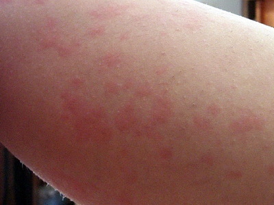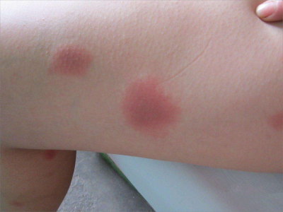 荨麻疹型药疹手臂上有红斑图