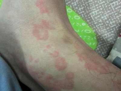 荨麻疹型药疹脚踝上有很多红斑图