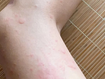 荨麻疹型药疹腿部有很多丘疹图