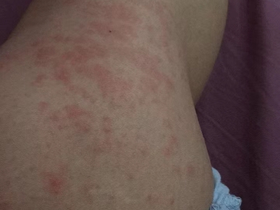 荨麻疹型药疹大腿上有一片红疹子图