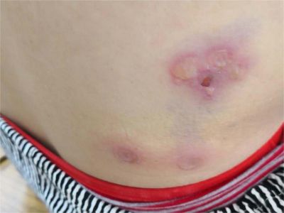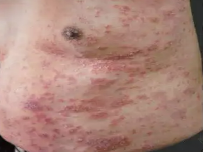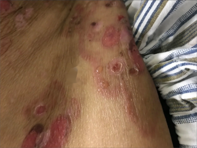 IgA天疱疮左侧腹部疱疹表面结痂图