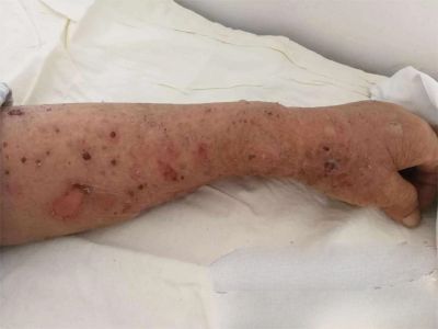 IgA天疱疮胳膊皮肤粗糙有很多结痂图