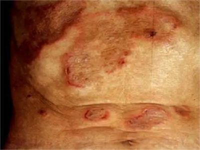 IgA天疱疮腰上的皮肤颜色变深,可以表现为红褐色,可以看到四五片大小不等的表皮破损样糜烂,皮损表面湿润。日常应注意保持局部皮肤的清洁、干燥,以防引起感染。