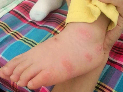 体虱病患者脚背有不规则样糜烂,具体大小不一,可以为红豆样大小,也可以相对增大,表面红润,且边缘与正常皮肤境界不清,还可以出现结痂现象。