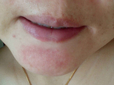 体虱病累及患者下巴,部分患者出现过敏反应所致的大片红色丘疹,局部皮肤有单个红色疙瘩,严重者有液体渗出,引起疾病程度加重。
