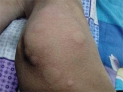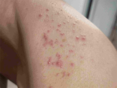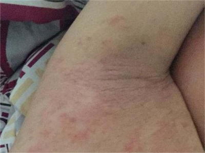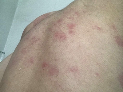 体虱病患者胳膊出现数量较多、类椭圆形的红色疙瘩,为黄豆状大小,分布较聚集,每个疙瘩边缘与周围皮肤境界不清,若不及时治疗,会逐渐融合形成大片红斑、风团。