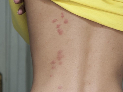 体虱病表现为背部出现散在的团状红斑,整体形状不规则,大小不定,边缘模糊,颜色较暗,患者会感到瘙痒剧烈,盲目搔抓时可以使红斑表面出现糜烂。