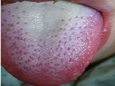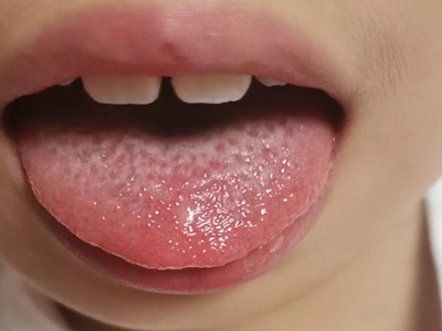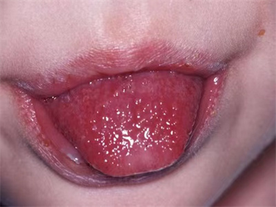 川崎病患者靠近舌尖部位充血红肿,且舌苔表面发白,上面出现很多散在的点状红色突起,颜色鲜红,看起来像个草莓,后期白色舌苔可自行脱落。