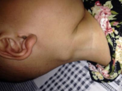 川崎病患者在脖子上出现一个明显的包块,边界不清晰,没有无化脓倾向,表面无发红表现,一般无自觉疼痛,按压时可有轻微胀痛不适,多可自行恢复。