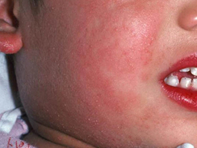 川崎病患儿的皮肤上可出现腥红热一样的皮肤损害,临床表现为脸部皮肤分布均匀的弥漫充血性针尖大小的皮疹,压之褪色,伴有轻微瘙痒。