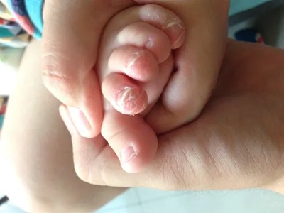 川崎病患者脚趾皮肤出现少量脱皮,前端翘起白色薄膜,脚趾无明显不适症状,不要暴力撕脱,让其自然脱落即可,患者脚背处还常出现硬性水肿。