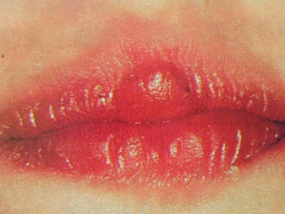 川崎病患儿嘴唇红肿明显,呈鲜红色,上嘴唇中间还有一个豌豆大小的红色疙瘩,呈圆球形,突出嘴唇皮肤表面,同时患者嘴唇上可有细小的裂口,伴有疼痛等自觉症状。