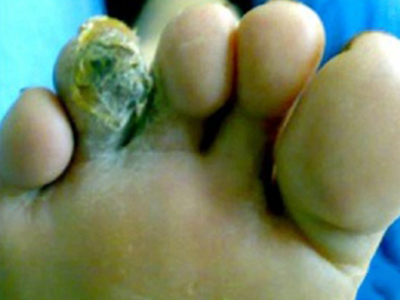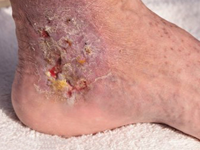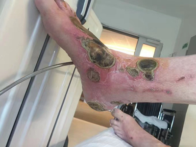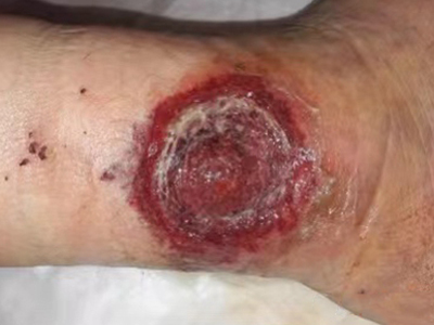 坏疽性蜂窝织炎脚部发红溃疡结痂图