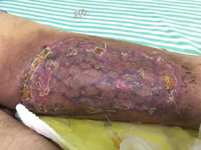 坏疽性蜂窝织炎腿部溃烂结痂图