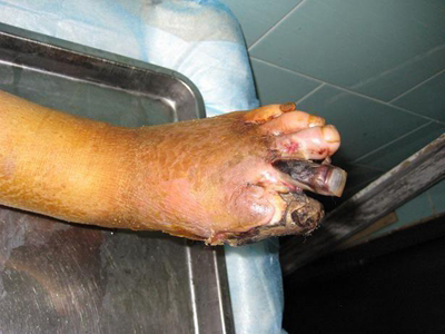 坏疽性蜂窝织炎脚趾发黑缺失图